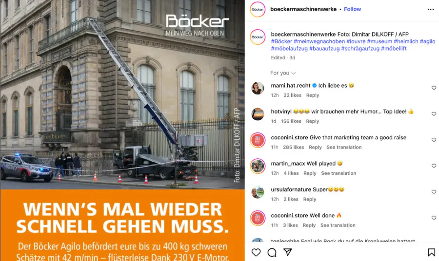 Deutscher Lifthersteller wirbt mit Louvre-Coup